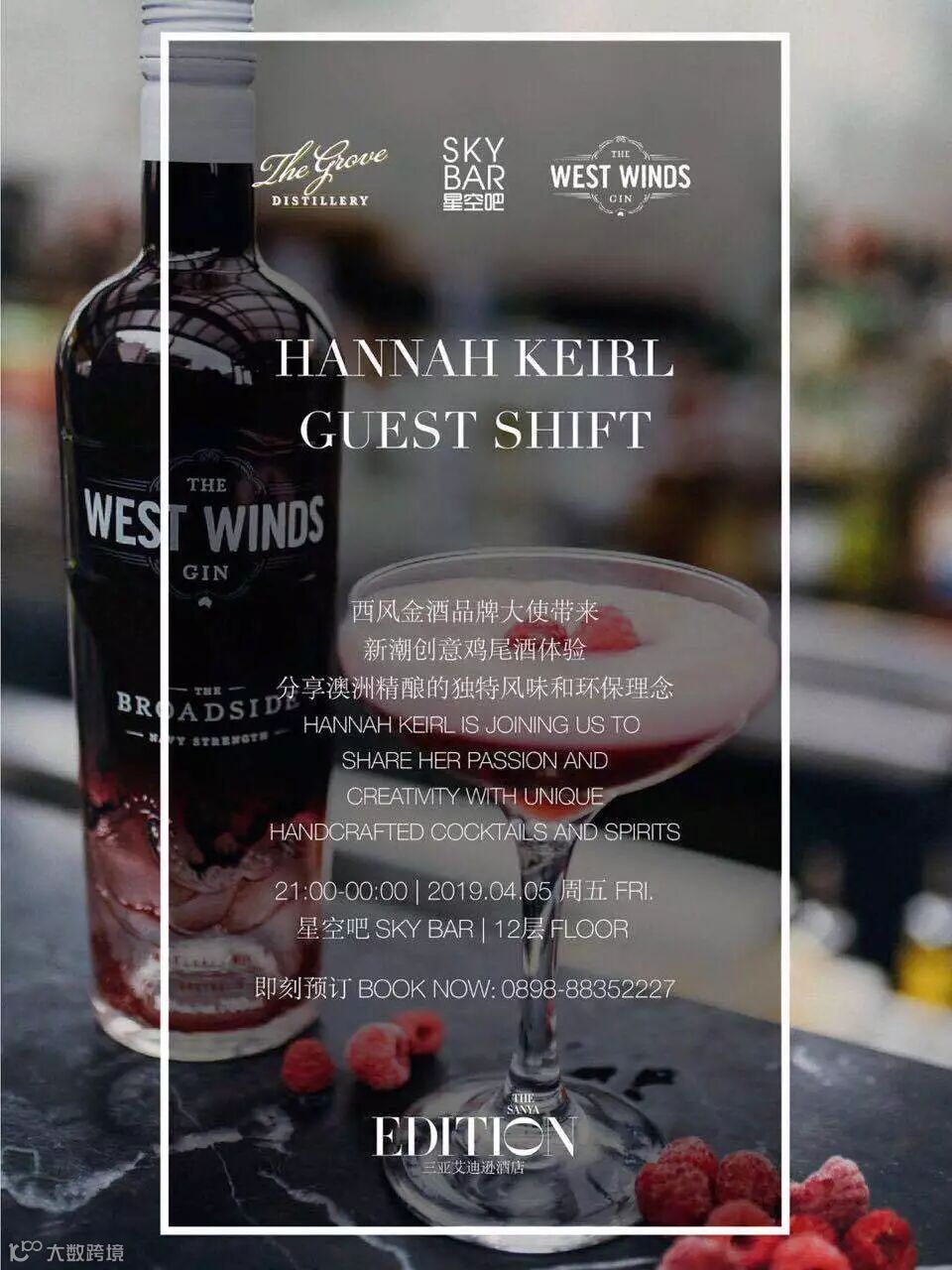 2019年4月5日,三亚艾迪逊酒店,Spirits Box创始人Hannah客座酒吧,为您献上“零浪费鸡尾酒”!