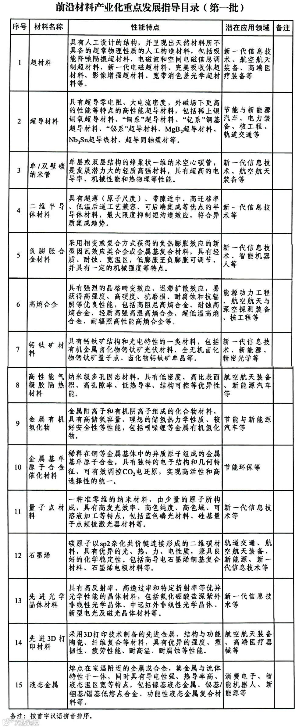 关于印发前沿材料产业化重点发展指导目录(第一批)的通知