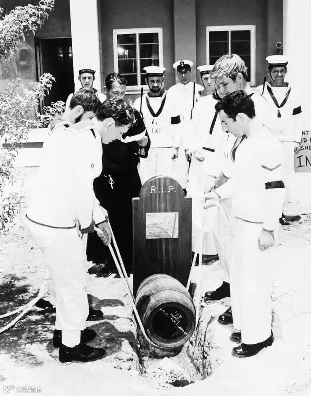 该传统一直持续了300年,终于在1970年画上句号。在最后一场“告昭众灵”仪式上,水手们举行了一场假葬礼,他们集体佩戴黑色袖章,分发最后一次朗姆酒配给。这一天也就被称之为“黑色干杯日”。