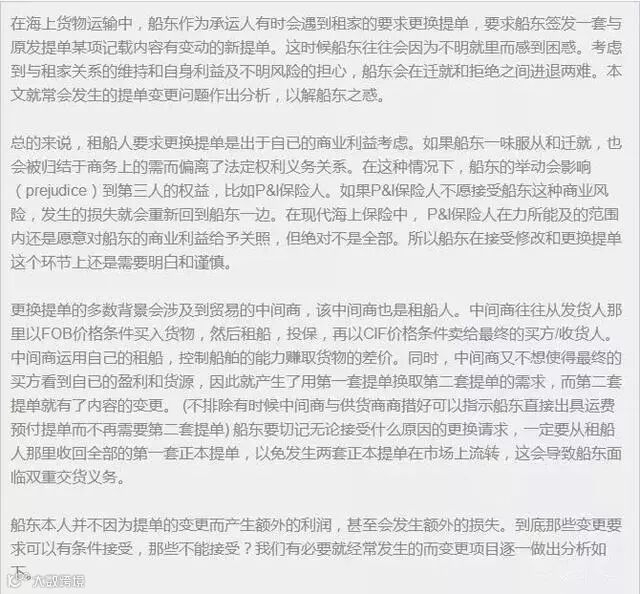 发货港一般会反映货物真实产地,除非买卖合同另有规定。在国际贸易合同中,货物的产地是条件条款,一旦卖方违背,买方知情后有权利解除合同和索赔损失。如果卖方倒闭或财务状况不良,买方会选择扣押签发不实提单的船舶,对船东提起侵权之诉。侵权之诉会打破海运合同中保护承运人的责任免除,责任限制和诉讼时效规定,承运人会丧失P&I的保障。所以更换提单中的实际装货港是船东坚决不可接受的。