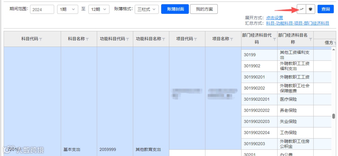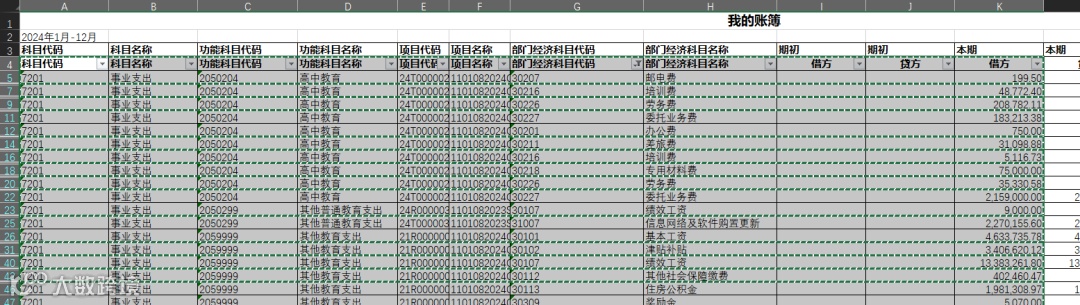 首先,将包含所需辅助项目的查询结果从系统中导出为 Excel 表格(导出可参照“U8 CLOUD 使用余额表按辅助项查询支出情况”)。这一步非常关键,应确保导出的数据字段完整,包括部门名称、经济分类科目、金额等信息,以便后续透视操作中能够灵活组合和展示。