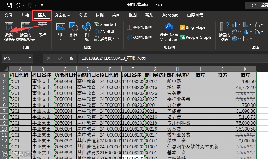 在财务数据分析与决算报表编制过程中,我们常常需要对原始数据进行结构化整理和汇总,以符合标准化报表的展示要求。Excel 的“数据透视表”功能提供了一种高效便捷的方式,可以快速对大量数据进行分类、汇总与格式化展示。以下介绍一种利用数据透视表,将查询结果按决算报表样式展开的具体操作方法。