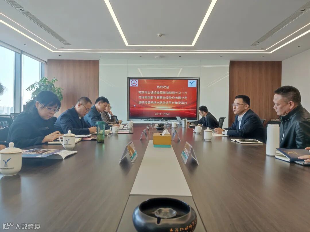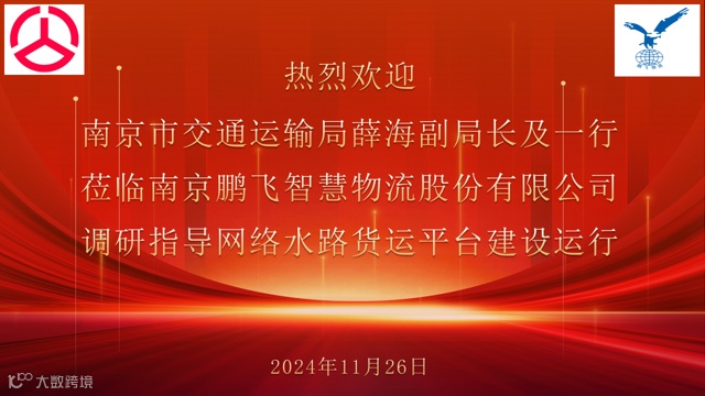 初冬小雪时节,长江南京段凉风拂面,蒹葭苍苍。11月26日上午,南京市交通运输局副局长薛海带领局相关职能部门和单位负责人一行,赴南京鹏飞智慧物流股份有限公司走访,调研指导网络水路货运平台建设运行工作。鹏飞物流董事长岳爱忠率公司高管团队相关负责人陪同调研。