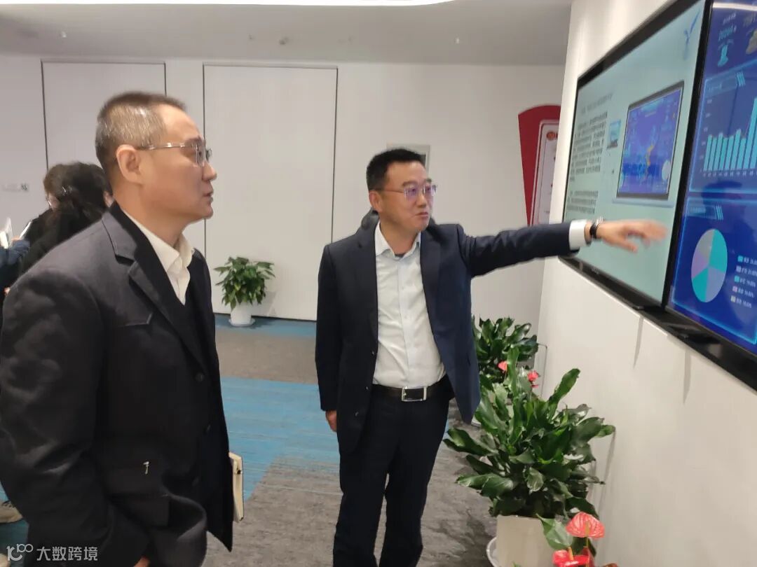 薛海一行参观了鹏飞智慧物流平台展示厅、荣誉墙和办公区。
