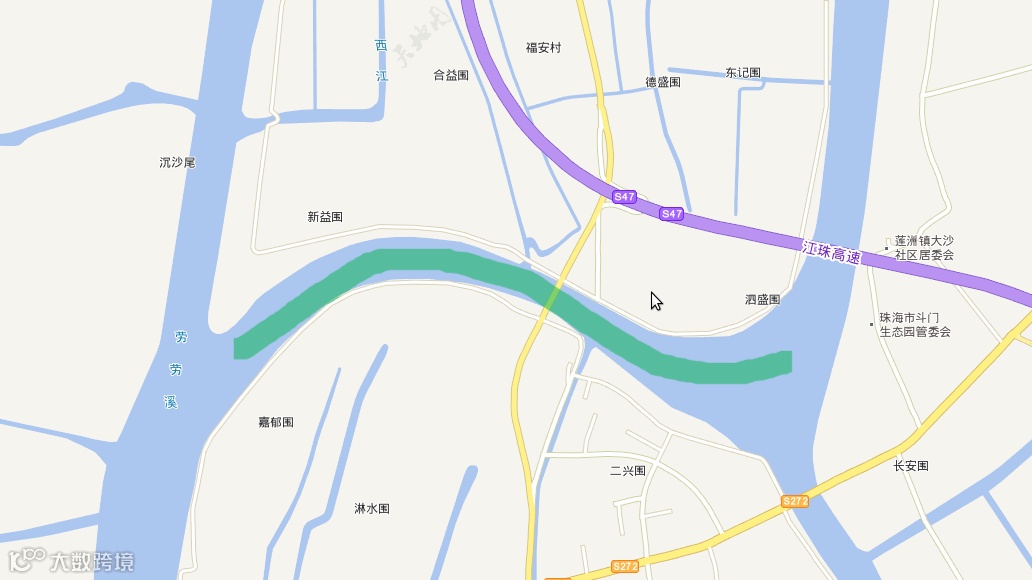 注释:珠海横坑水道横坑西28号灯桩至横坑东31号灯桩之间水域为狭窄弯曲航段