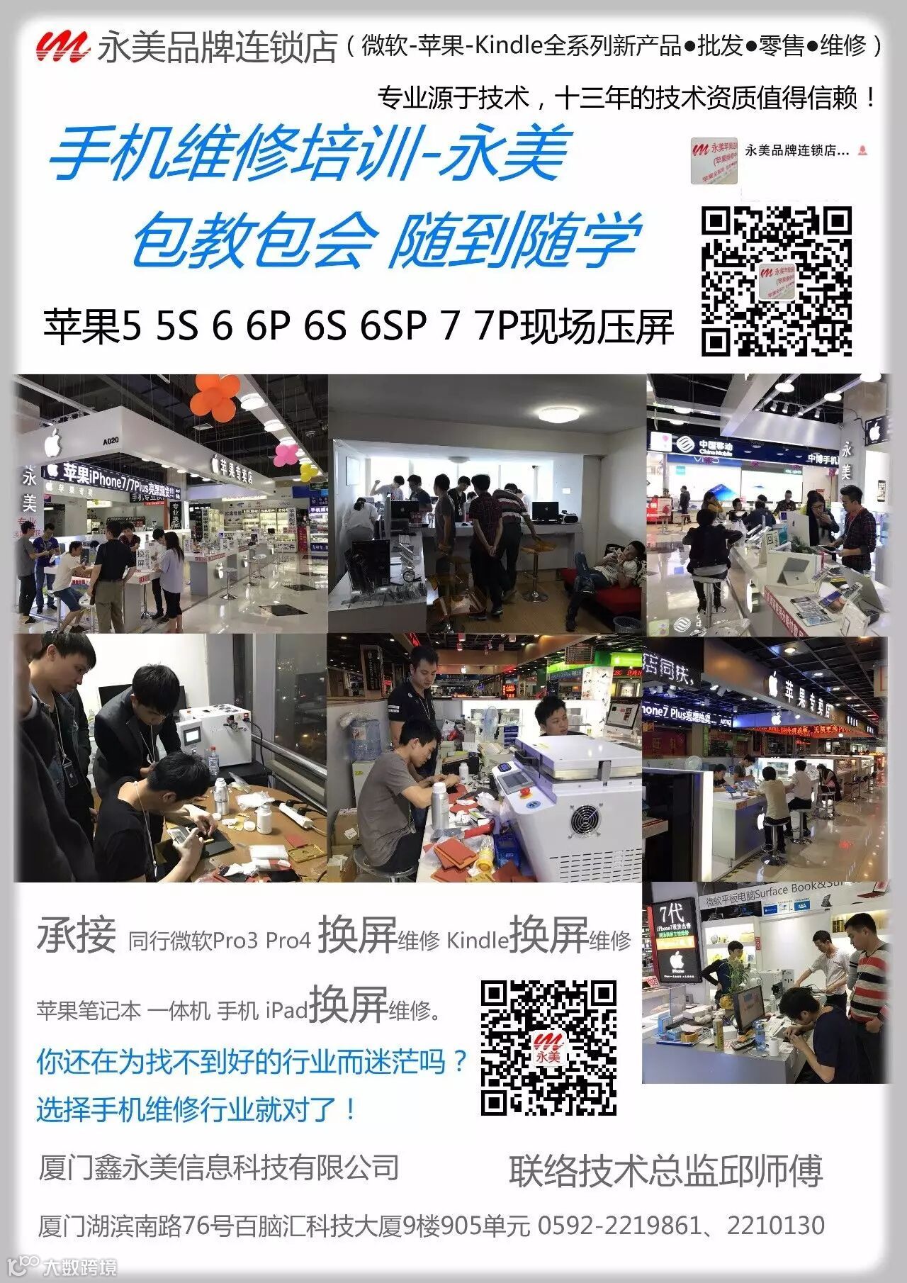 厦门永美手机维修培训学校,就业创业,帮助就业,扶持创业,资金困难,协助贷款,终身扶持一条龙服务,可信度可百度。三月学员,终身服务,终身成为永美优秀团队合伙人。