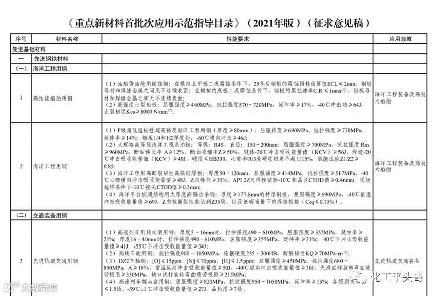 《重点新材料首批次应用示范指导目录》中,列出了众多关于领域中所需要的高端新材料,这些新材料都是中国产业发展所必需的新材料类型,也是中国进口依存度较高的产品。如果化工企业新上项目,属于该政策中的某一新材料,必将受到政策的支持。