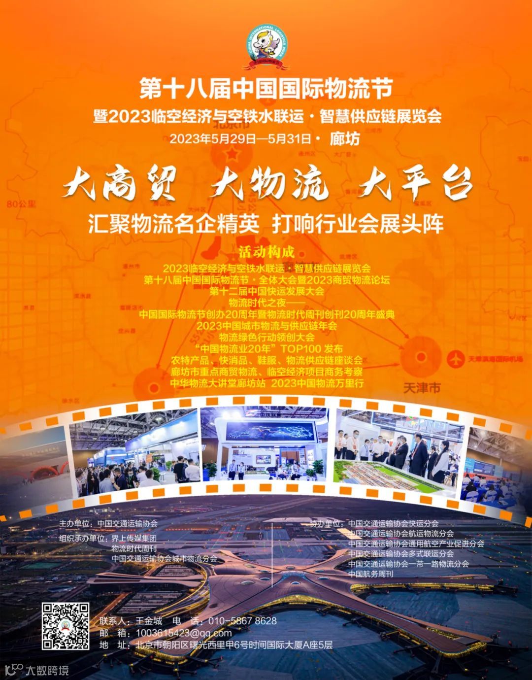 为了抓住新机遇,聚焦新产业、探索新模式,激发新活力;汇聚商贸物流的成功经验,打造区域经济增长新动能,促进商贸流通与物流企业上、下游的业务交流与对接,“第十八届中国国际物流节暨 2023 临空经济与空铁水联运 • 智慧供应链展览会”将于5月29-31日在廊坊举办。