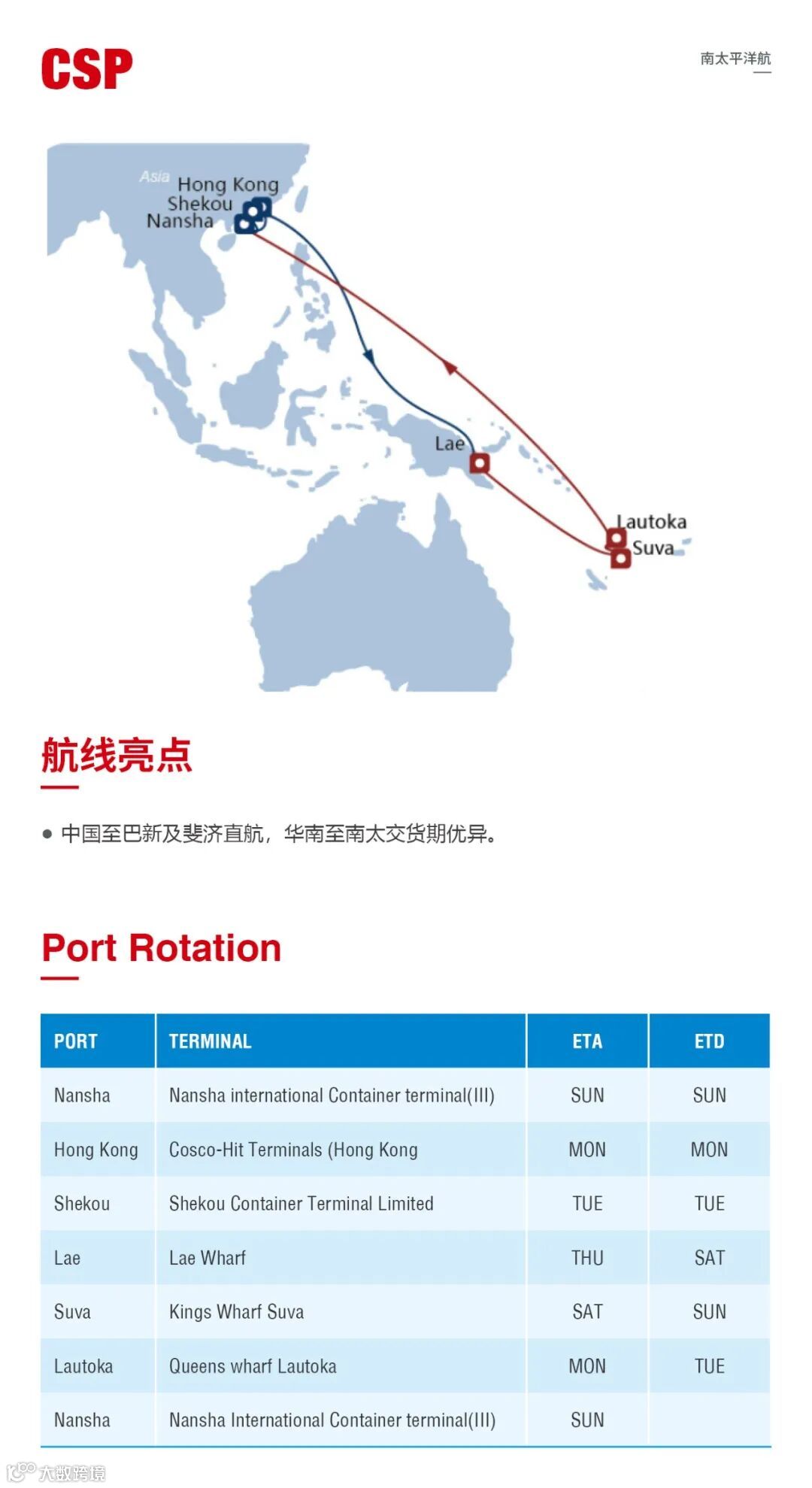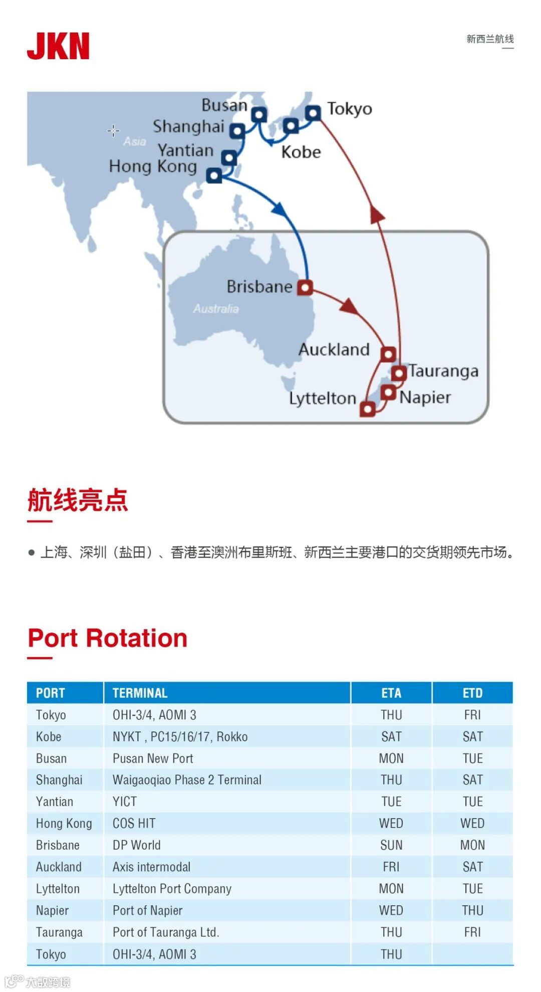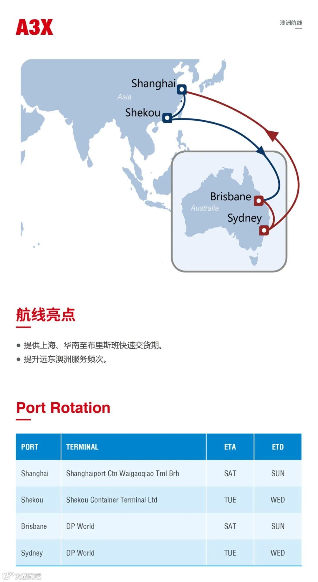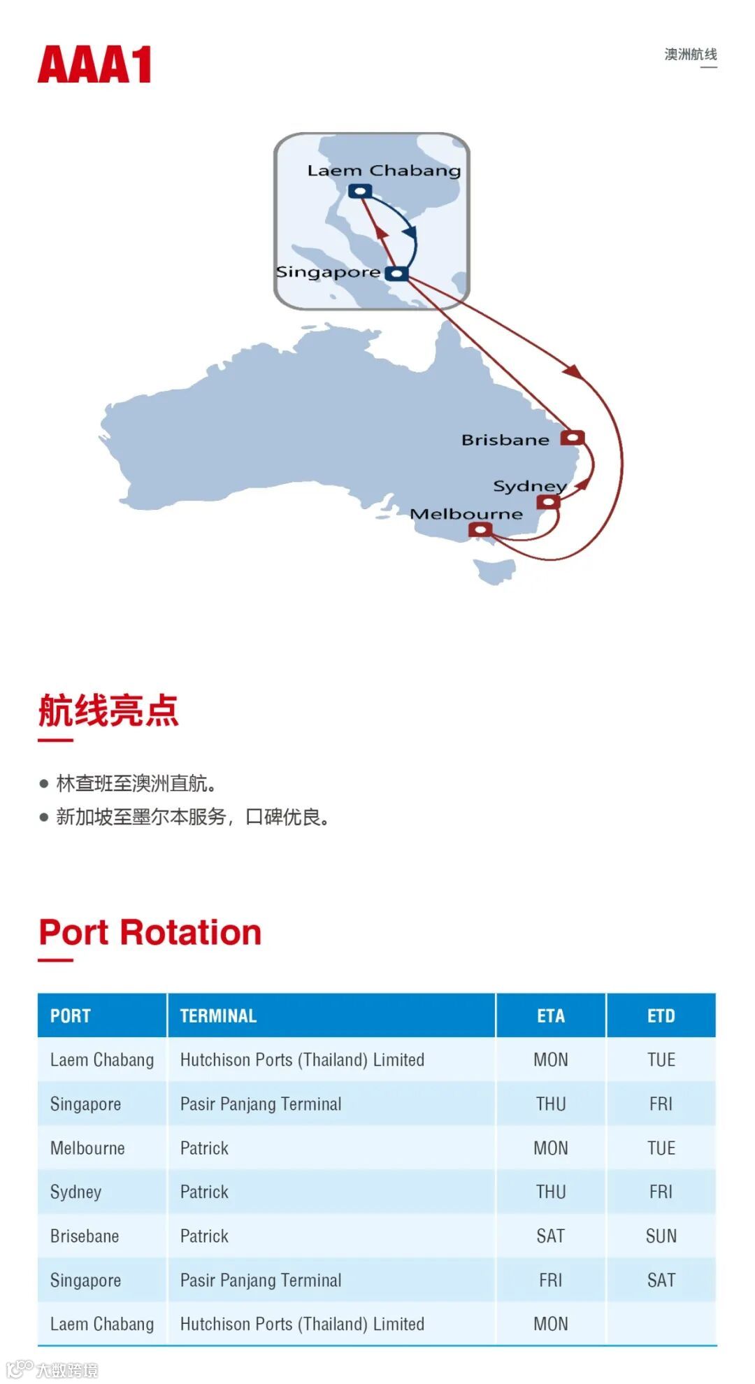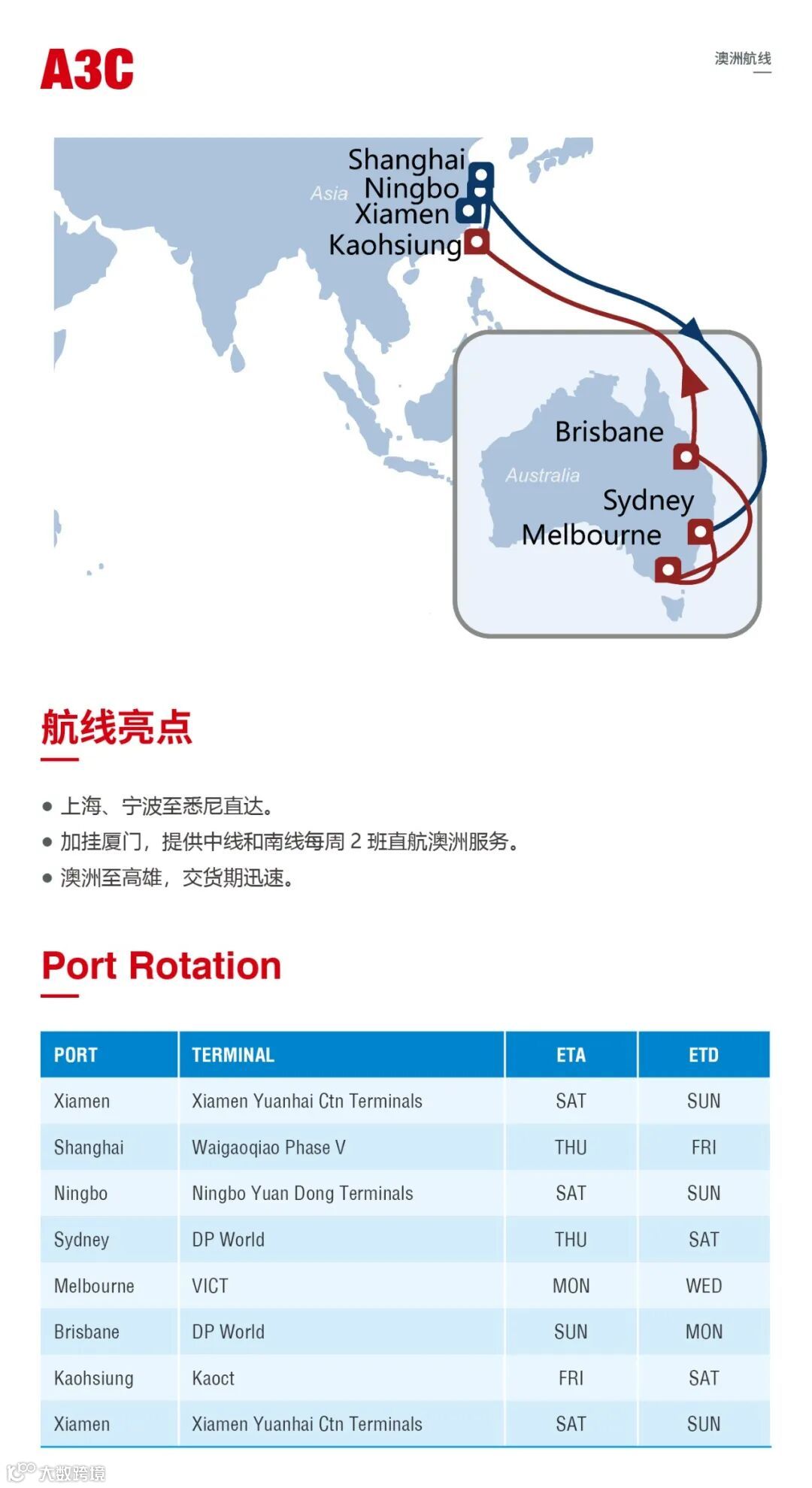 2023年东南亚澳洲ASAL航线再度升级,我司增投一条4250 TEU的自有船,周舱位增加约600 TEU,进一步提升服务能力。