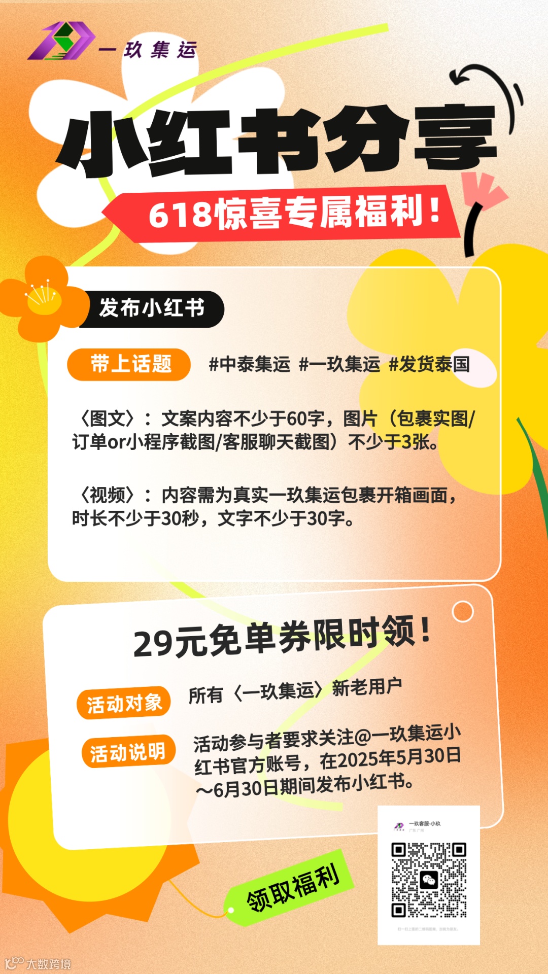 1.活动期间,每个会员的小红书账号(需关注@一玖集运官方小红书账号)皆可参与,但仅可参与一次(一个会员ID对应一个小红书账号);