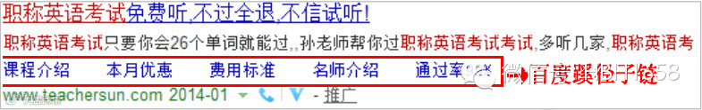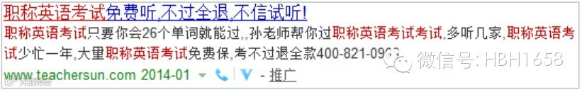 例1:如果用户在百度搜索关键词“职称英语考试”百度展示出来的结果: