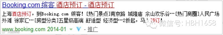 例2:如果用户在百度搜索的关键词为“上海酒店预定”百度展示出来的结果如下;