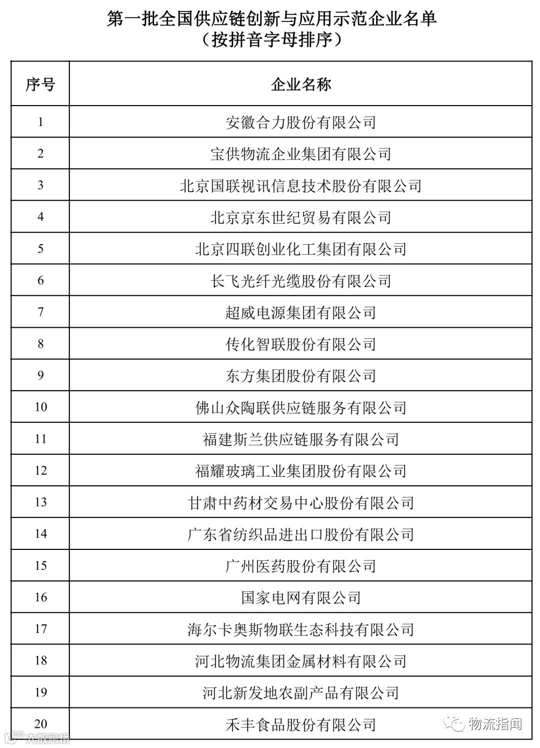 第一批全国供应链创新与应用示范城市和示范企业评审结果公示