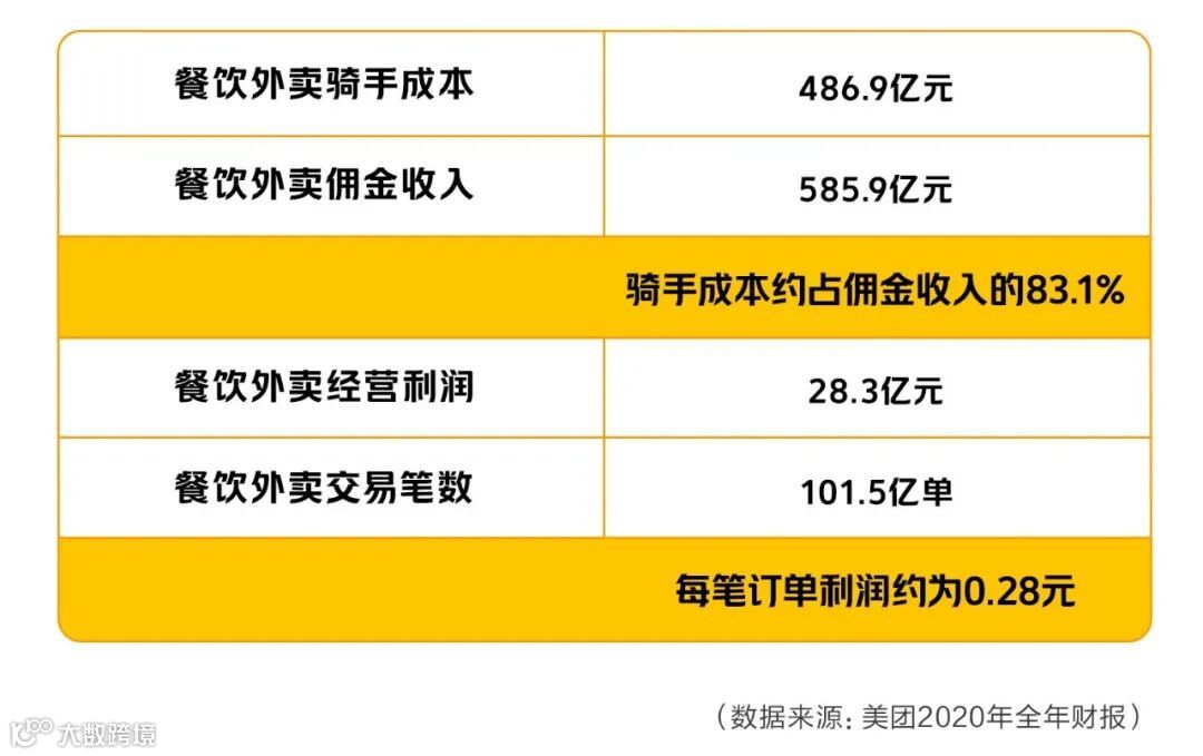 美团表示,外卖是一个连接用户、商家、骑手三方的业务,也是一个微利业务,主要靠佣金支撑运转,成本大头是骑手工资,2020年,骑手成本占佣金收入的83.1%。美团外卖每笔订单利润是0.28元。其中,美团配送的订单,单均配送成本是7.38元,每笔亏损0.03元。我们希望给用户提供性价比高的服务,也希望让商家和骑手都有钱赚。直接降佣金,虽然简单,但无法持续,结构性的收费调整才能让整个外卖生态往更多赢、更健康的方向发展。