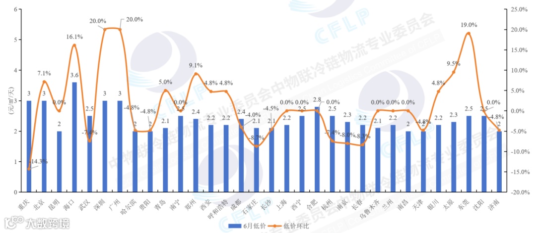 图5 2024年6月部分城市冷库价格行情(低价)