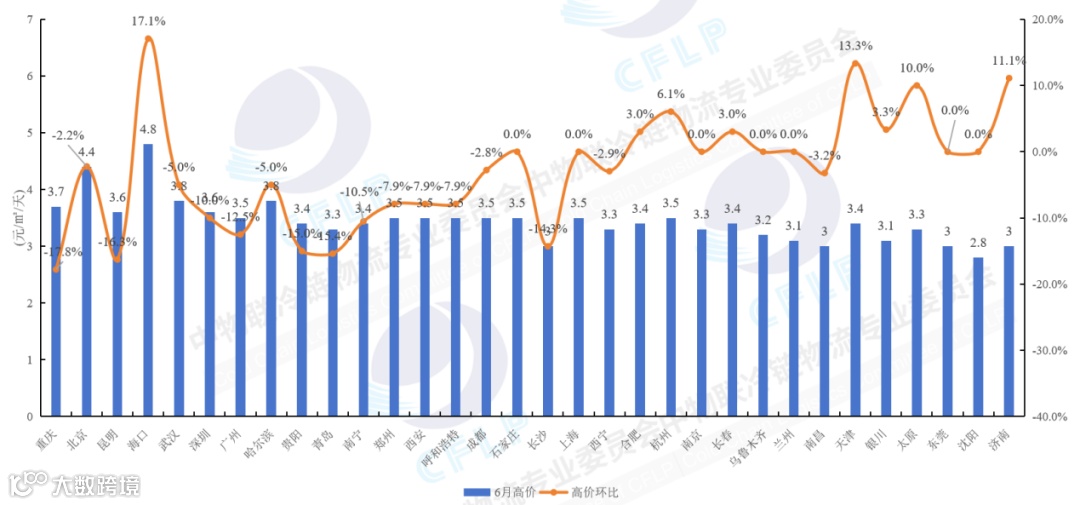 图6 2024年6月部分城市冷库价格行情(高价)
