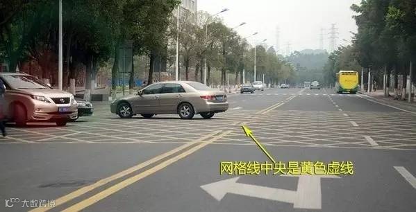 大家记住“可过不可停”,黄色网格区域是代表禁止停车,但在这一块区域掉头是被允许的,只要中央没有隔离护栏,机动车可以在此区域进行掉头。