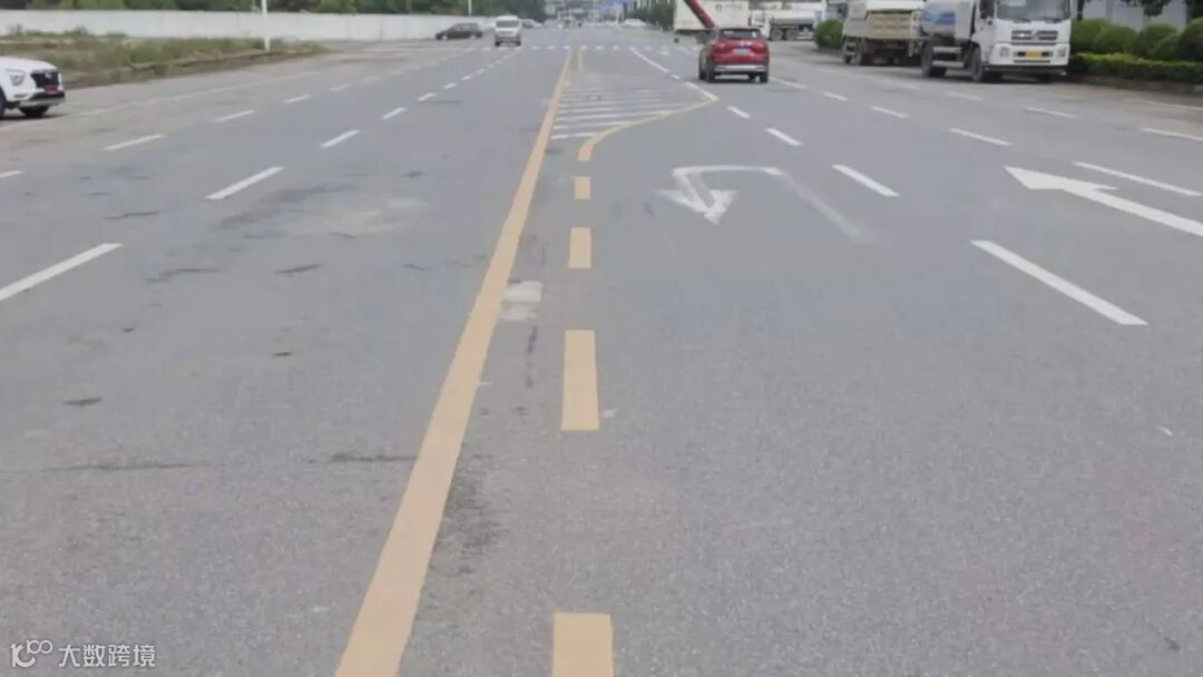 一般道路中的中央隔离带也会在接近路口时由实线变为虚线,车辆可在此区域进行调头。