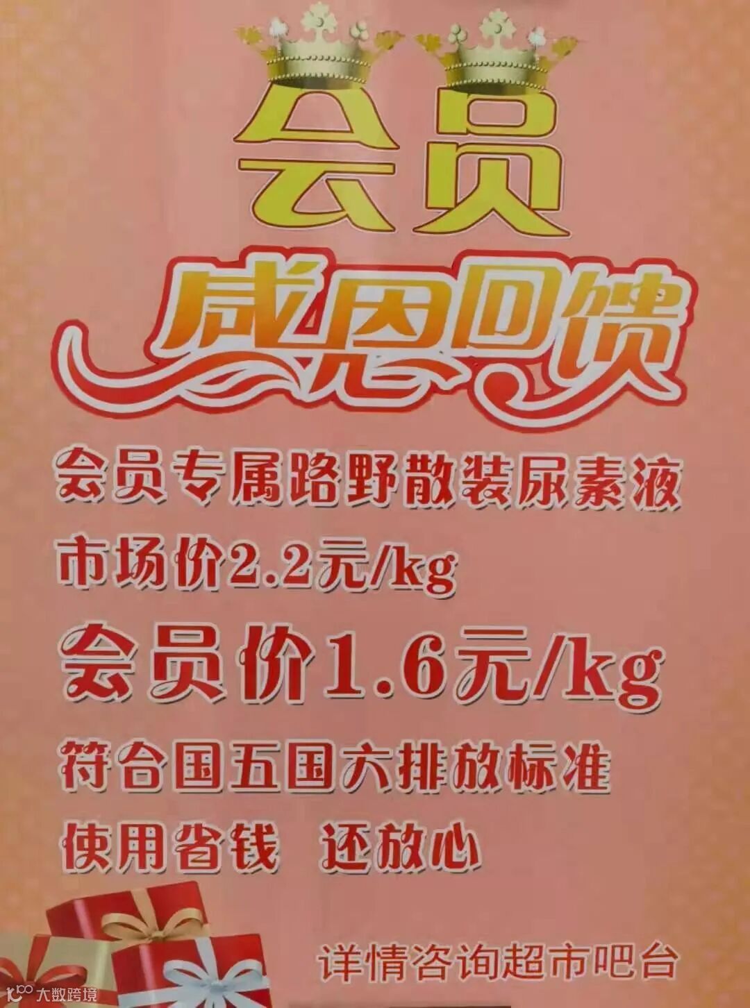 ● 从即日起顺泰会员可凭公众号内会员凭证到超市前台办理超低价会员尿素卡,会员专属路也散装尿素液市场价2.2元/kg,会员价1.6元/kg!