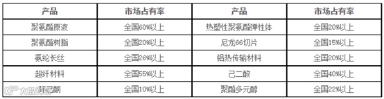 据华峰集团介绍,其聚氨酯原液市场、超纤材料等市场占有率高,达到50-60%以上。