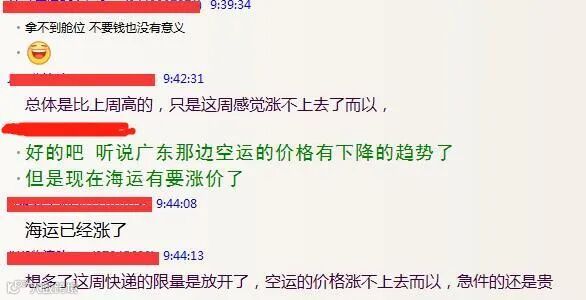 有卖家表示,现在的空运价格有了下降的趋势,ups红单方面也稍有降价,虽然降价幅度还是有点小,但可以预料的是空运涨价快到天花板了,各位发货斟酌着考虑。
