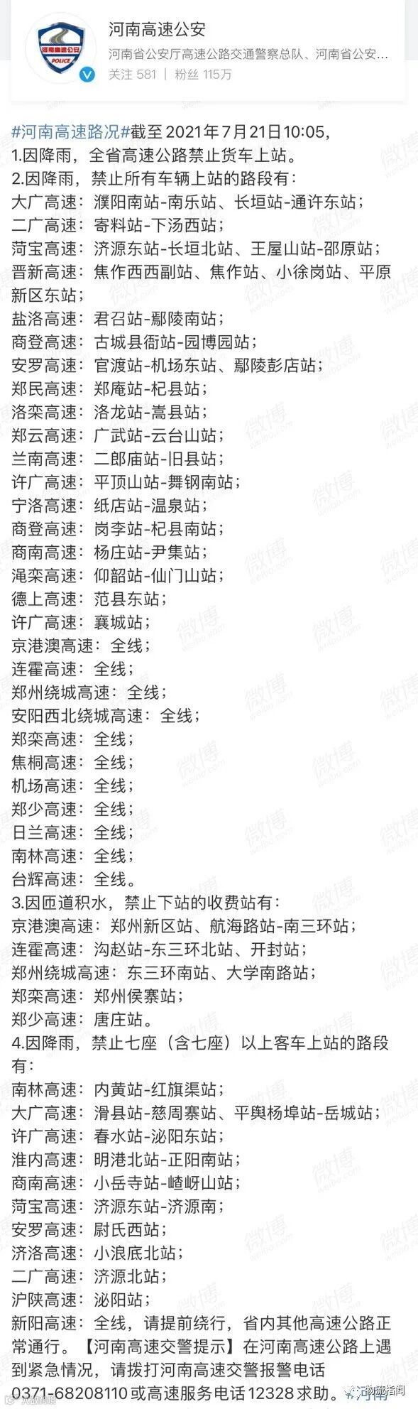 据@河南高速公安消息,截至2021年7月21日10:05,因降雨,全省高速公路禁止货车上站。