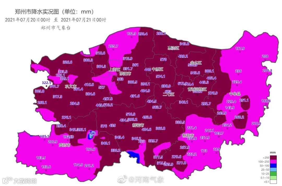 博主“中国气象爱好者”总结称:这不是三天下了一年的雨,是一天下了一年的雨!郑州气象局也称,郑州特大暴雨千年一遇!