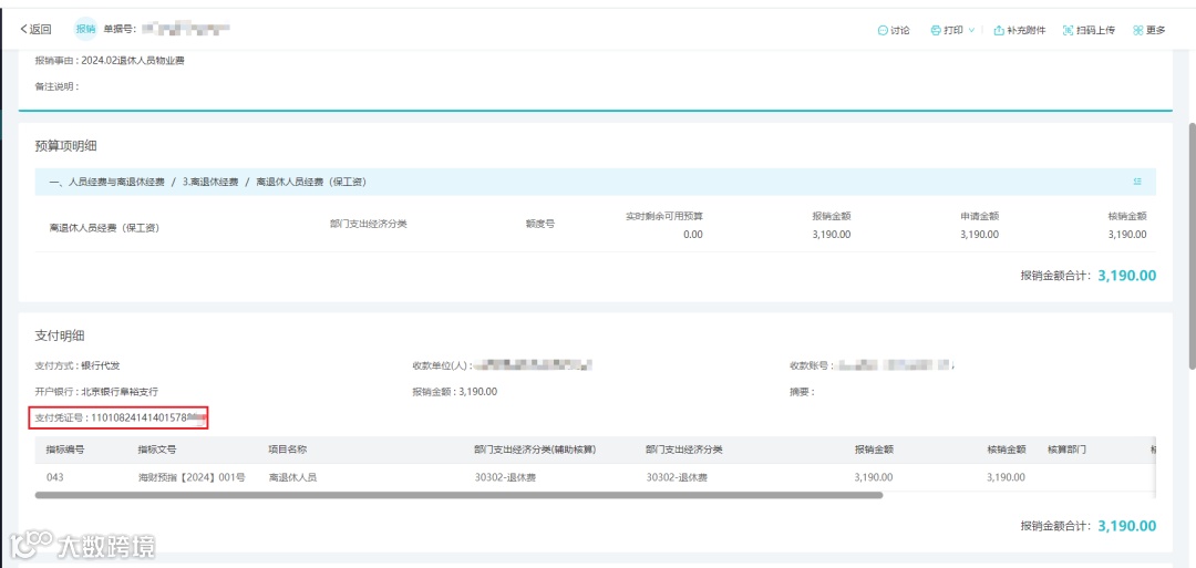 3、第三条更加宽泛:金财支付上有一个支付凭证号的金额,同一个支付凭证号下有可能有多条指标。比如支付5万元,有可能用了四个指标,这四个指标其实就是同一个支付凭证号,==内控的报销金额/核销金额相等的情况