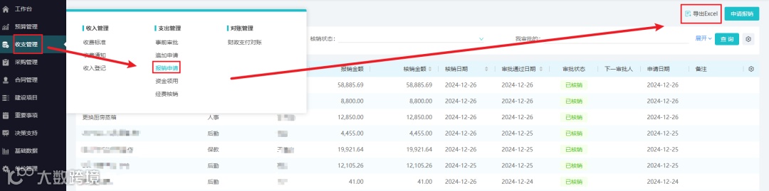 12、智能对齐以后反写到报销单的支付凭证号是可以通过报销单Excel导出来。