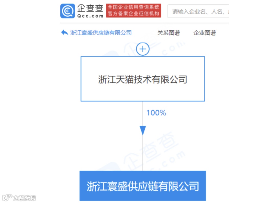9月17日,浙江寰盛供应链有限公司成立,法定代表人为何琳,注册资本2000万元人民币,经营范围包含:供应链管理服务;餐饮管理;软件开发;互联网数据服务;数据处理服务等。企查查股权穿透显示,该公司由浙江天猫技术有限公司100%控股。(企查查)