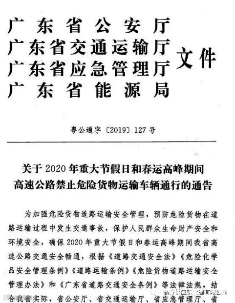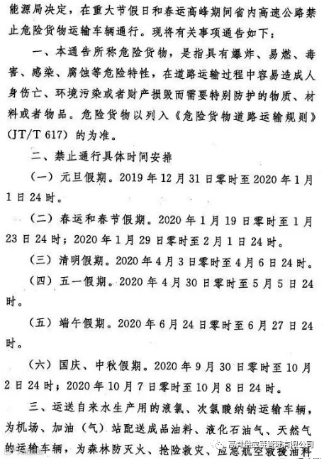 劳动节假期期间2020年4月30日0时至5月1日24时、5月5日0时至5月6日24时。省内高速公路禁止危险货物运输车辆通行。