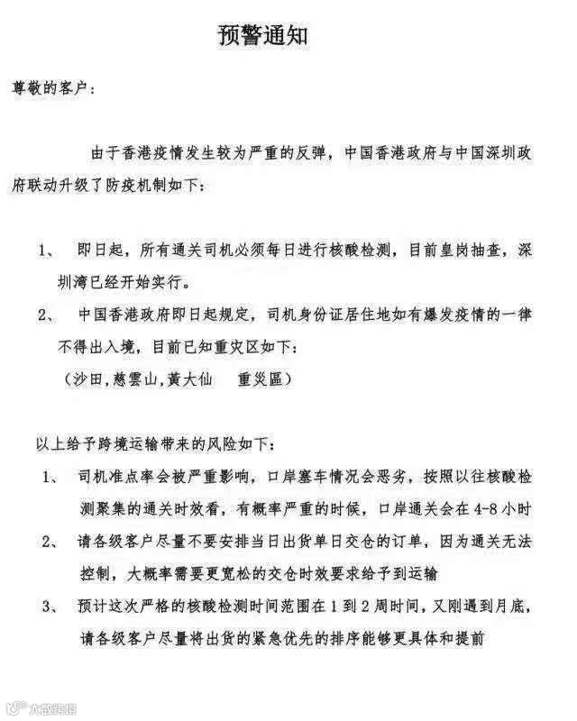 在预警通知中,对于司机的检验会更加严格,司机准点率将会被严重影响,口岸塞车情况会更加恶劣。