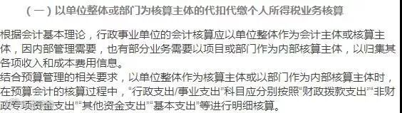 随着"政府会计准则-基本准则"、"政府会计制度-行政机构的会计主体和报表"(统称新制度)的颁布和实施,行政事业单位的会计模式发生了重大变化,在新制度下,对于部门预算管理中的现金收支业务,应在采用财务会计的同时进行预算会计;对于其他业务,只应进行财务会计,以下是对代扣代缴个人所得税的业务会计的探讨。"-