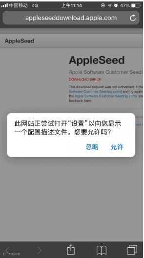 这里网页会弹出:是否允许安装描述文件?