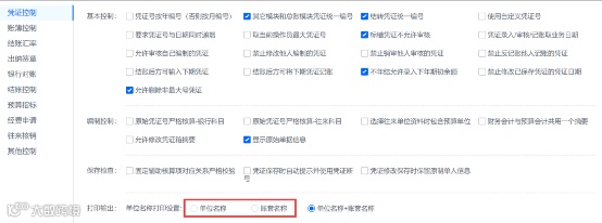 只需要修改“打印输出”下的“单位名称”或者“账套名称”,再打印凭证即可。