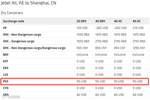 从2020年5月10日至2020年5月31日,对从西亚和中亚地区到远东地区的所有干集装箱货物征收旺季附加费(PSS)