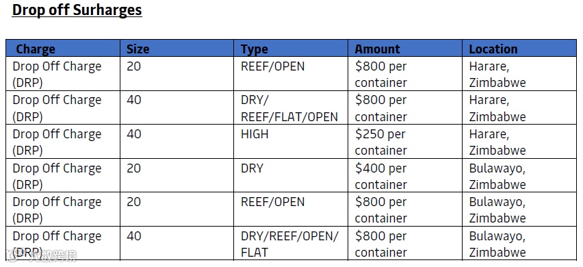 自2020年6月8日起在津巴布韦实施非管制货物和管制货物的卸货费。