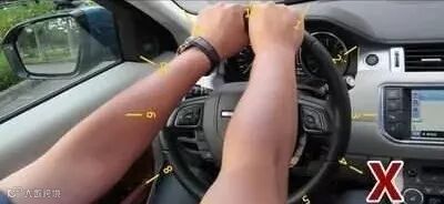 这种握方向盘的方式,实际上也是错误的。该种方式不仅会加长反应时间和操作时间,更为关键的是,一旦车辆发生碰撞,气囊弹出很有可能会把手臂弹伤。毕竟车祸只在一瞬间,零点几秒就可以决定人的命运。