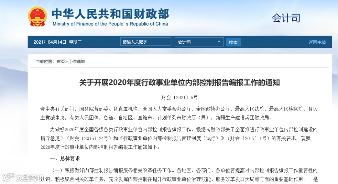 财政部4月8日发布《关于开展2020年度行政事业单位内部控制报告编报工作的通知》,原文如下。