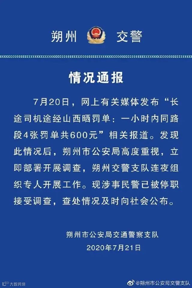 7月20日,一则视频在网络上盛传,题为“长途司机途经山西晒罚单:一小时内同路段4张罚单共600元”