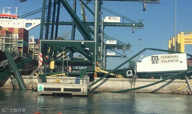 西班牙当地时间9月13日上午,MSC旗下2.3万TEU级的“MSC MIA”号轮(全球载箱量最大的集装箱船之一)在离开西班牙瓦伦西亚的集装箱码头时,与岸上的龙门吊发生碰撞。事故导致龙门吊倒塌,龙门吊的操作员受伤住院。