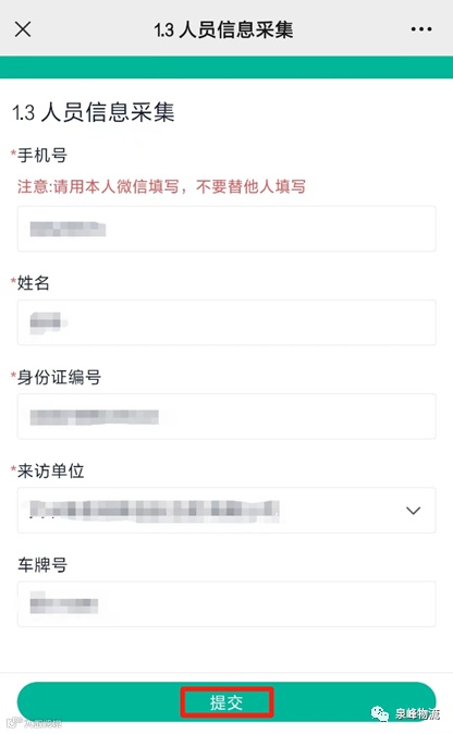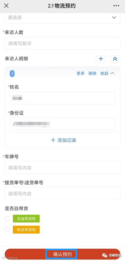 填写预约人员信息,确认内容无误后点击提交按钮;