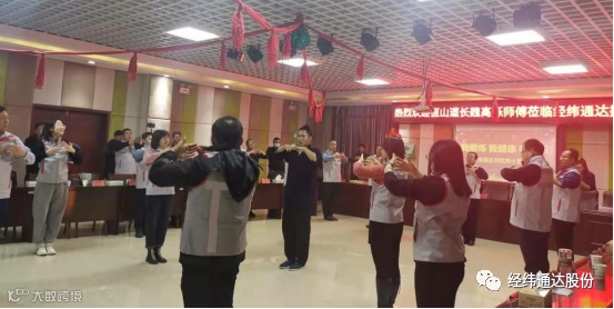生命在于运动,健康的体魄是生活与工作的保障。通过此次健身气功培训,将以点带面在公司中普及推广健身气功“八段锦”的学习,同时也为谱写经纬通达更加美好的明天贡献智慧与力量!
