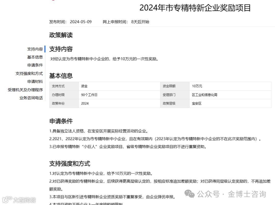 深圳市宝安区工业和信息化局关于开展市专精特新中小企业奖励项目申报工作的通知