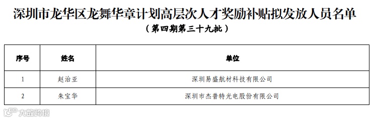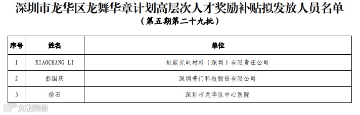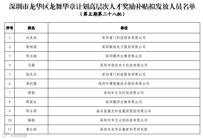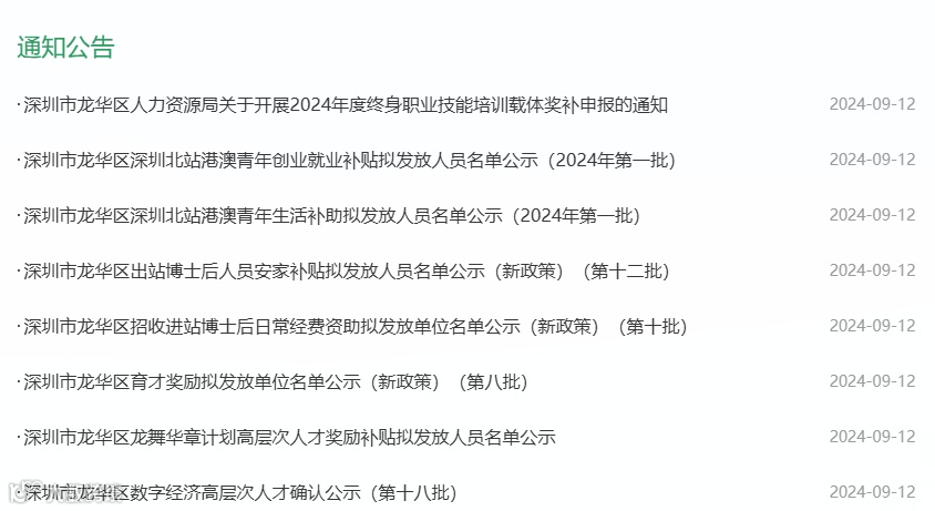 龙华区高层次人才奖励补贴、数字经济人才、博士后日常经费、安家费、港澳青年创业就业补贴等等项目名单公示