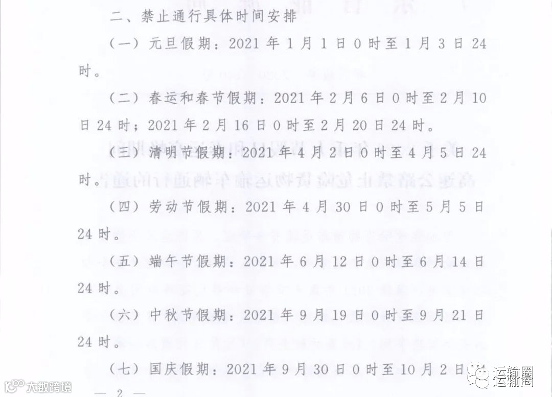 全年常规:自2021年1月1日起--2021年12月31日,在广西行政区域内高速公路对危险货物运输车辆实施0-6时限行措施。通告如下: