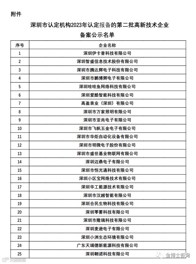 附件:深圳市认定机构2023年认定报备的第二批高新技术企业备案公示名单