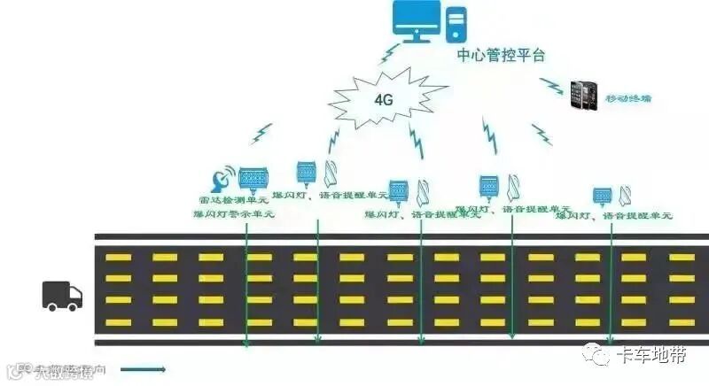“高速预警多功能防疲劳系统”由爆闪灯、语音喊话、雷达侦测、中心管控平台和远程APP系统组成。