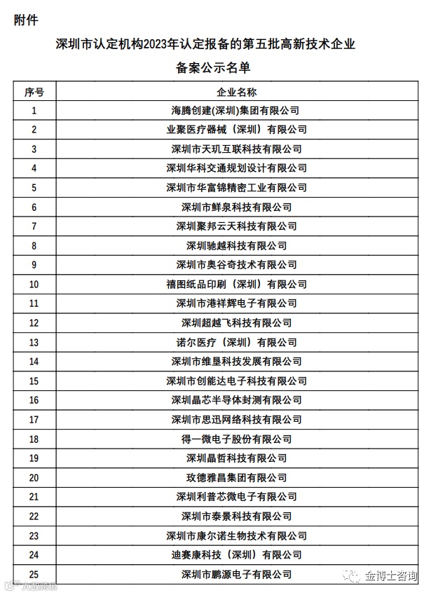 附件:深圳市认定机构2023年认定报备的第五批高新技术企业备案公示名单