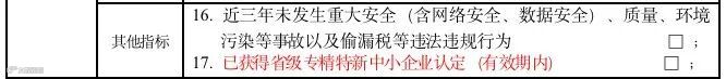 第五批国家级小巨人推荐指标包括:专3、精3、特2、新3+2、链1、品1、其他2等七个方面共17项。